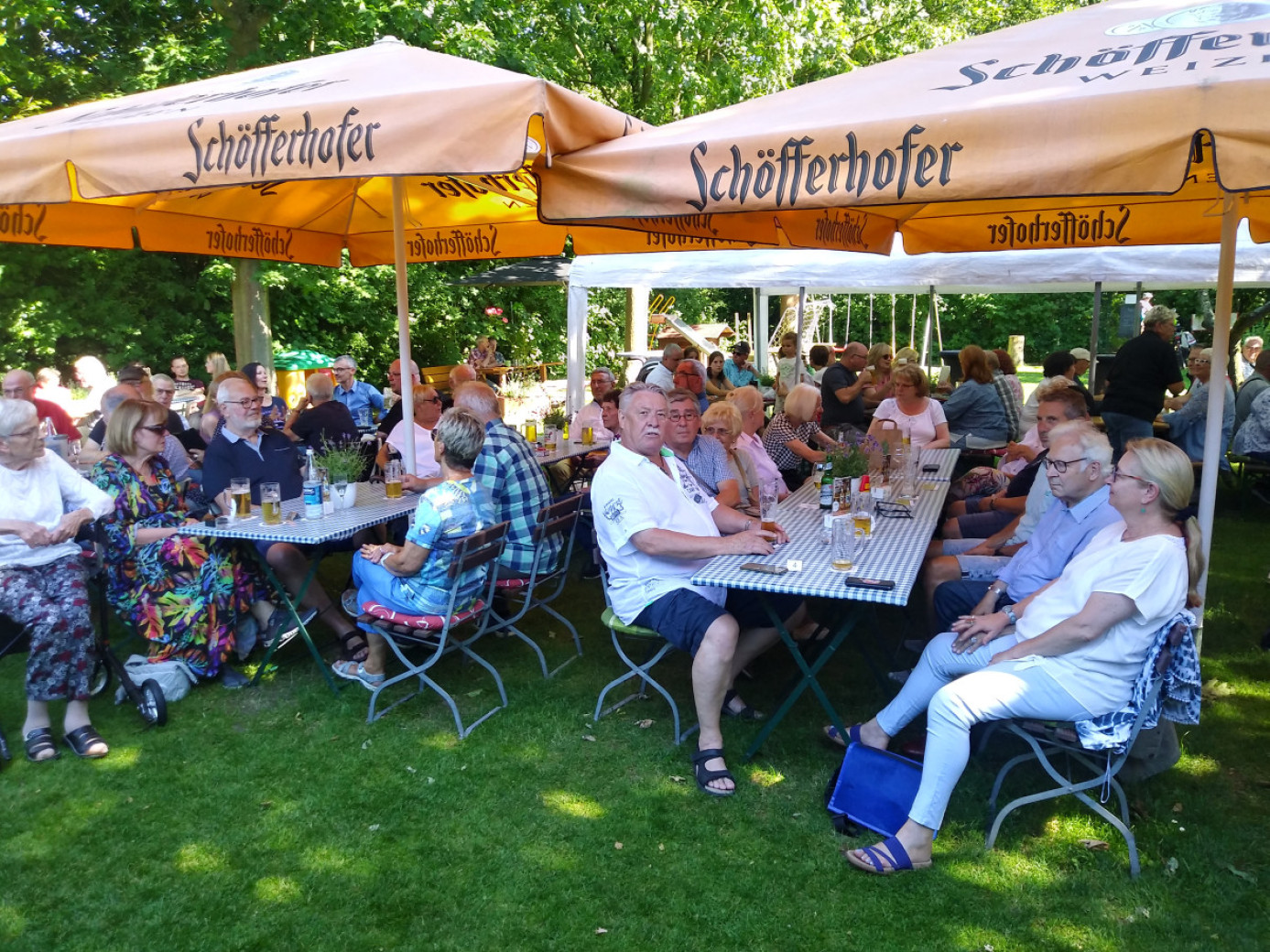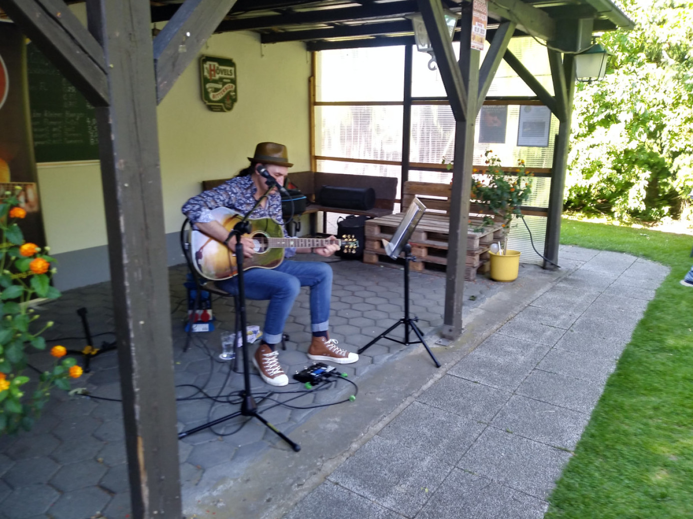 Nach gut dreistündigem Programm verabschiedete sich Bernd Mehring mit leider nur einer Zugabe: „Ich hätte gerne noch mehrere Zugaben gegeben, aber mir ist eine Saite gerissen und weitere Songs kann ich mit nur noch fünf Saiten leider nicht bieten!“ gestand der Musiker bei großem Applaus ein. Dem Abend im Biergarten tat das keinen Abbruch: Die Sonne, Bier und Gegrilltes konnte man auch nach 20.00 Uhr noch genießen!