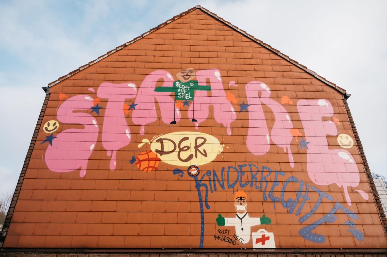 Since 2017, the young neighborhood residents have been decorating dull electrical boxes, gray facades and walls along Westerfilder Straße with images of their own rights.