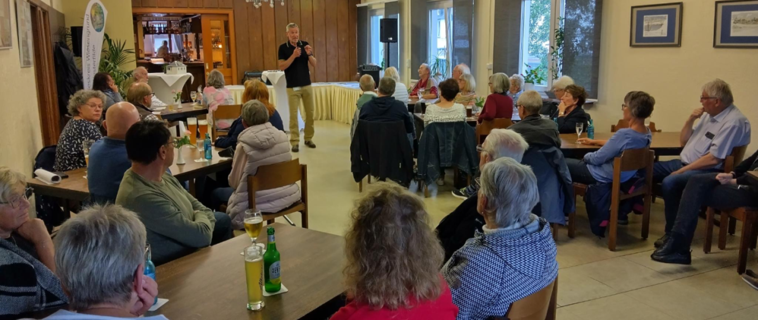 Kriminalhauptkommissar Jörg Stenczl stand beim gut besuchten Stammtisch des Freundeskreises am 24.09.2024 Rede und Antwort. In einem lebendigen Vortrag warnte er zunächst davor, Unbekannte in die Wohnung zu lassen: „Niemand sollte unbefugt in ihre Wohnung gelangen! Halten Sie Unbekannte auf Abstand und öffnen sie nicht einfach die Tür. Wenig aufwändige technische Schutzmaßnahmen an der Wohnungstür wie Türspion, Gegensprechanlage und Sperrbügel sind probate Mittel, um unerwünschte Besucher fernzuhalten! Setzen aber bitte auf Qualität der technischen Hilfsmittel. Sie sichern ihren Tresor ja auch nicht mit einem Schloss aus dem Baumarkt für 4,50 Euro!“ fügte er schmunzelnd hinzu. „Die Polizei berät Sie gerne bei der richtigen Wahl der Sicherungstechnik, deren Einbau von Fachfirmen erfolgen sollte!“