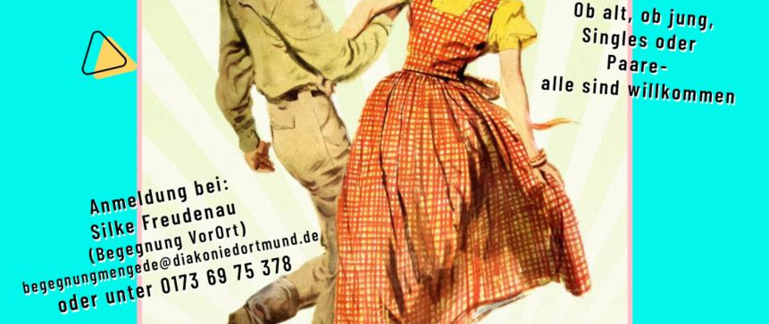 Die Tanzsportgemeinschaft Bodelschwingh e.V. und Begegnung VorOrt laden alle Tanzfreudigen unter dem Motto "Wir tanzen, wie es uns gefällt!" nach Westerfilde ein. Das Alter spielt hier keine Rolle, ob jünger oder älter, allein oder als Paar, alle sind willkommen! Getanzt wird Einzel-, Paar- und Gruppentanz begleitet von Tänzerinnen und Tänzern der TSG Bodelschwingh. Für den geselligen Rahmen mit Kaffee, Kuchen, Knabberei und Kaltgetränk wird um eine Spende von 5,-€ gebeten.